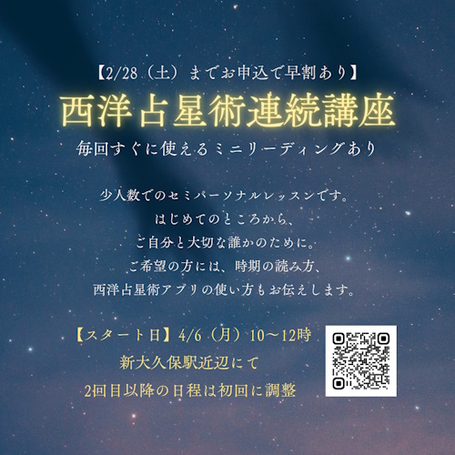 「西洋占星術連続講座(6回連続) 2026年4月スタート」