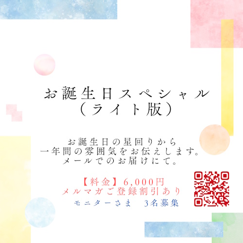 お誕生日スペシャルライト版 モニター募集(終了しました)