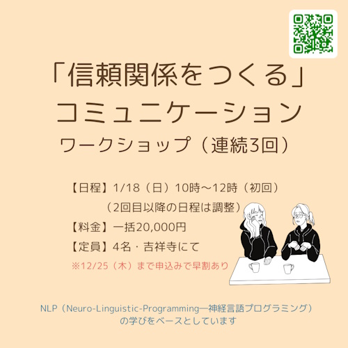 1月からはじまる「信頼関係をつくる」コミュニケーション・ワークショップ(連続3回)に参加してみませんか?という宣伝なんですけれど、