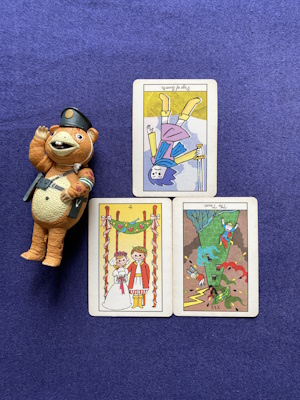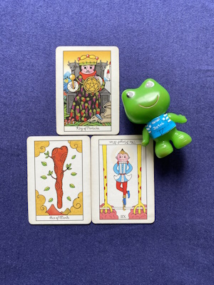 コート(人物)カード、小アルカナ、大アルカナの3枚で引いています。
