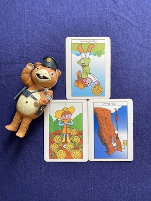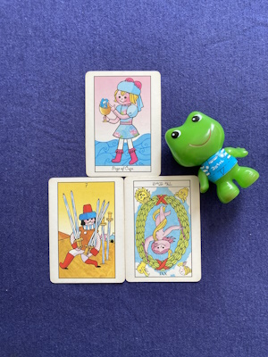 コート(人物)カード、小アルカナ、大アルカナの3枚で引いています。