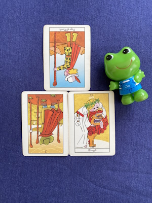 コート(人物)カード、小アルカナ、大アルカナの3枚で引いています。