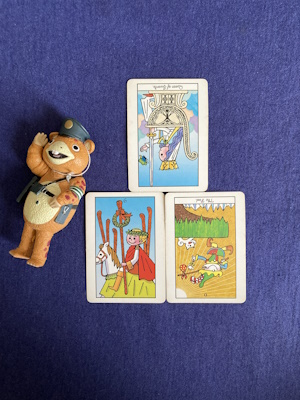 コート(人物)カード、小アルカナ、大アルカナの3枚で引いています。