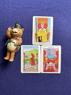 コート(人物)カード、小アルカナ、大アルカナの3枚で引いています。