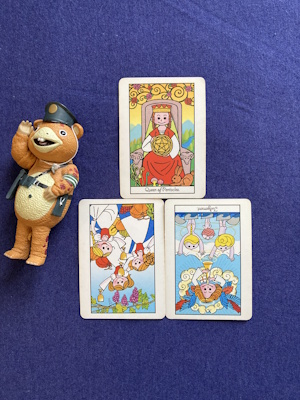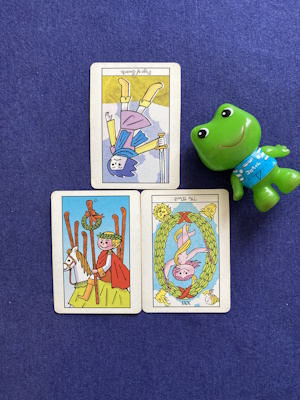 コート(人物)カード、小アルカナ、大アルカナの3枚で引いています。