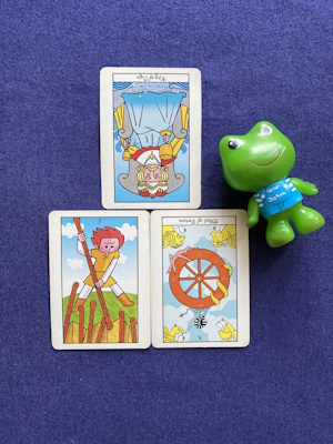 コート(人物)カード、小アルカナ、大アルカナの3枚で引いています。