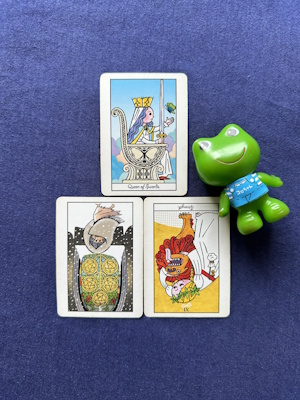 コート(人物)カード、小アルカナ、大アルカナの3枚で引いています。